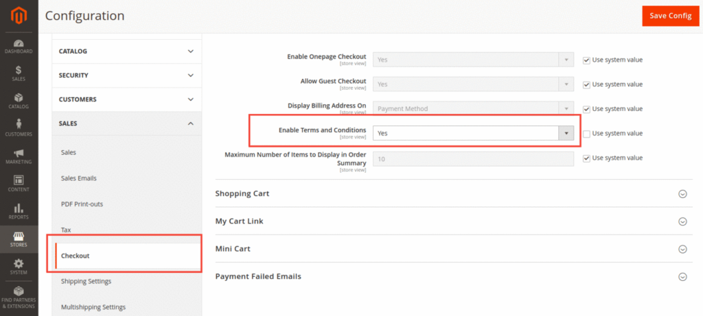 Then click on Store -> Settings -> Configuration