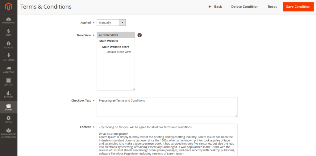 Step 2 – Add Terms and Conditions Content