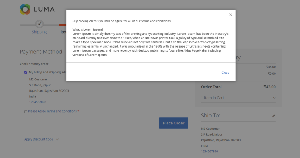 How to add Magento2 checkout Terms And Conditions