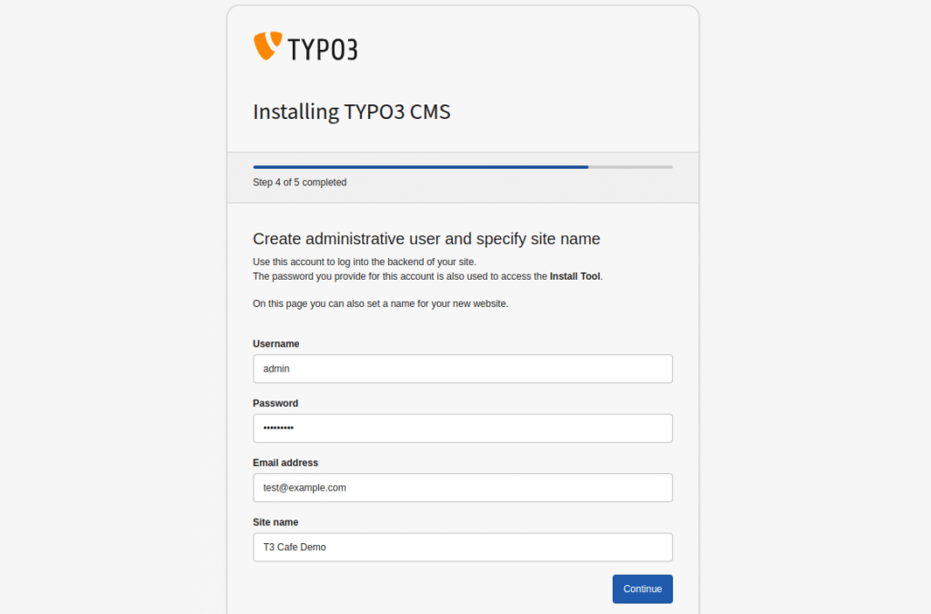 Step 5 – Create admin user & provide website name