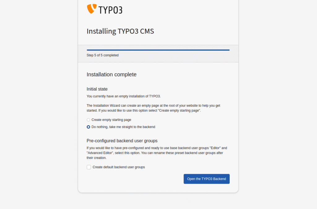 And now you are done with your fresh TYPO3 installation.